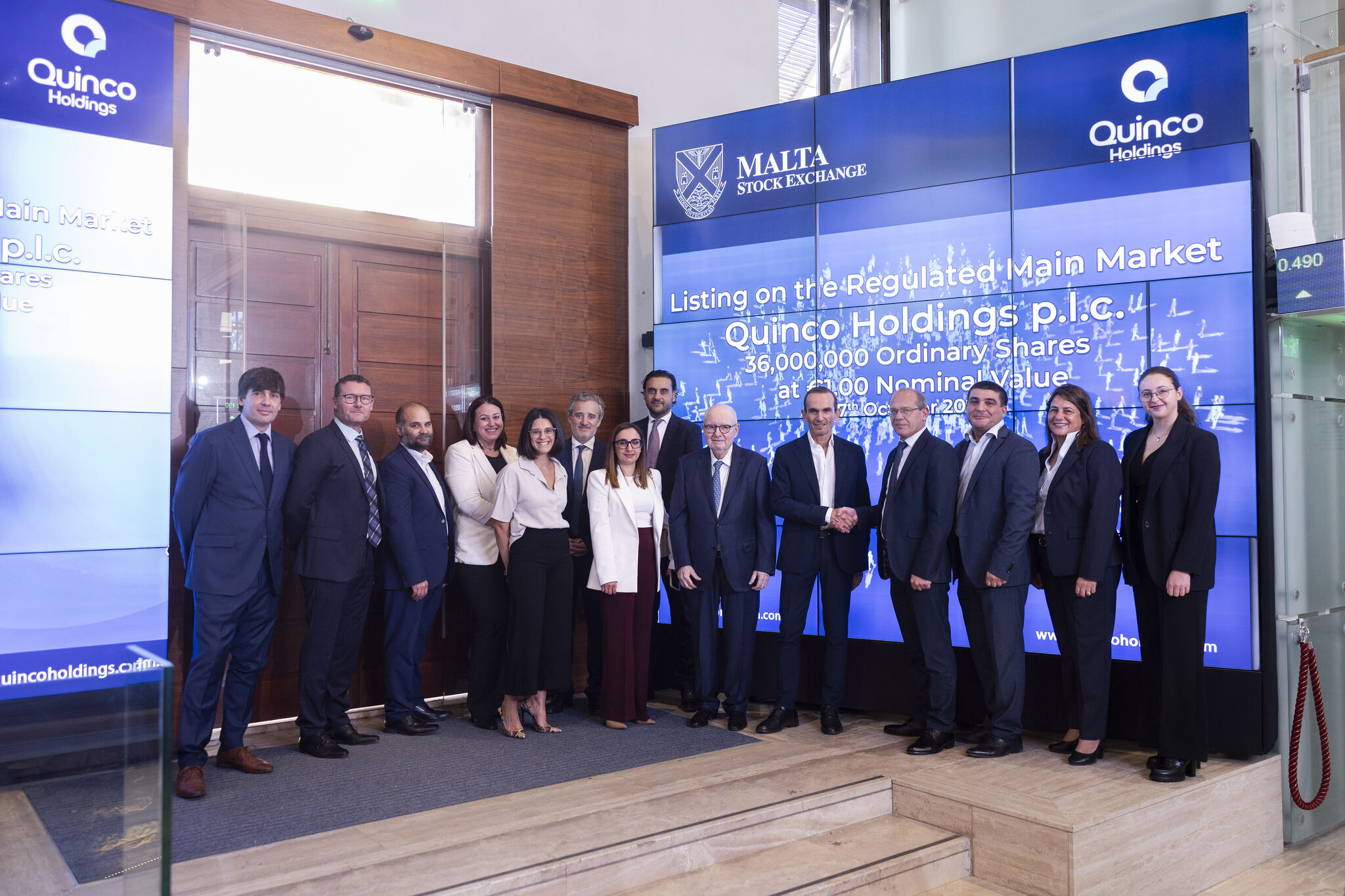 In his welcome speech, Malta Stock Exchange Chairman Joseph Portelli augured Quinco and its management a successful commencement to its listing on the Malta Stock Exchange.